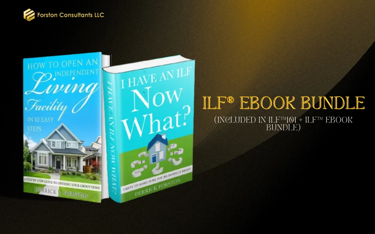 The fundamentals of building your Independent Living Facility® are here. You'll have access to ILF®101 Course and ILF® eBook Bundle. The Course has 15 video lessons, and you'll get two eBooks - How To Open An Independent Living Facility® and I Have An ILF® Now What?